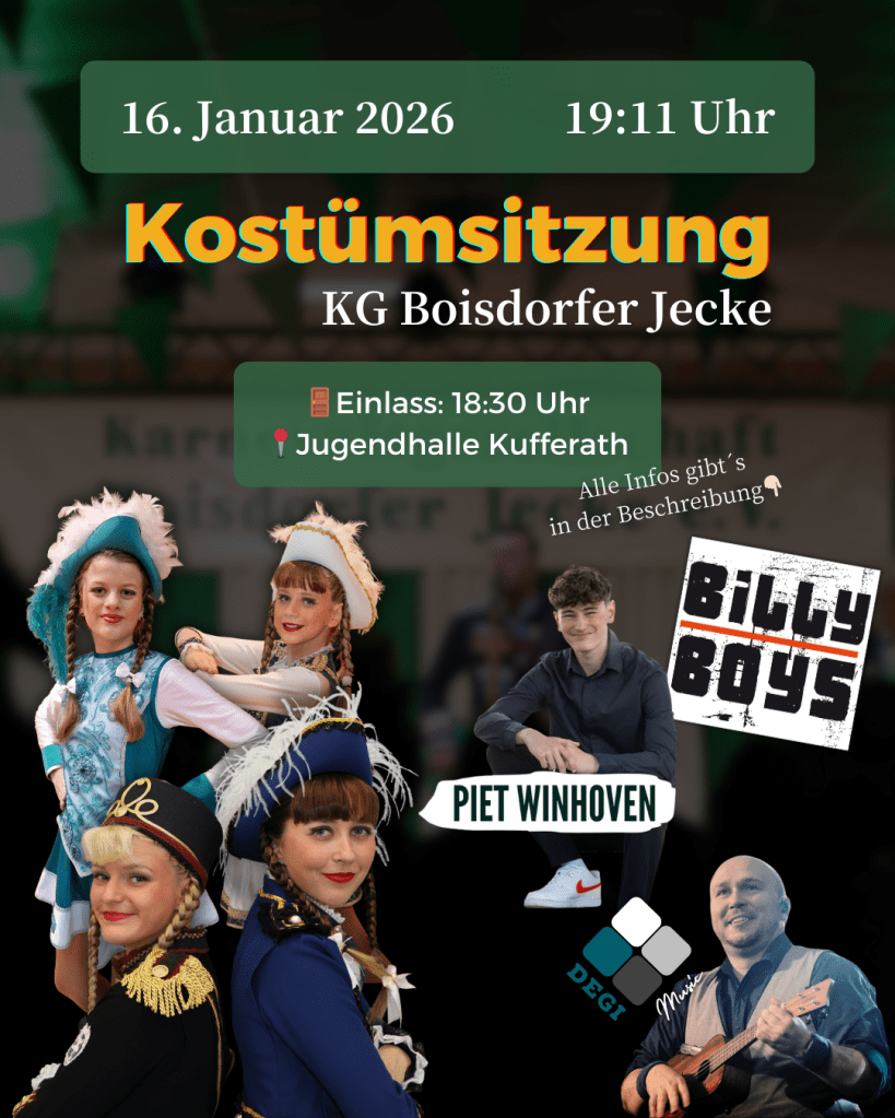 Sitzplätze könnt ihr bis zum 5. Januar über Instagram, Facebook, bei den Mitgliedern, unter 📧 kg-boisdorfer-jecke@web.de oder 📞 02421/6953457 reservieren 🫱🏻🫲🏼